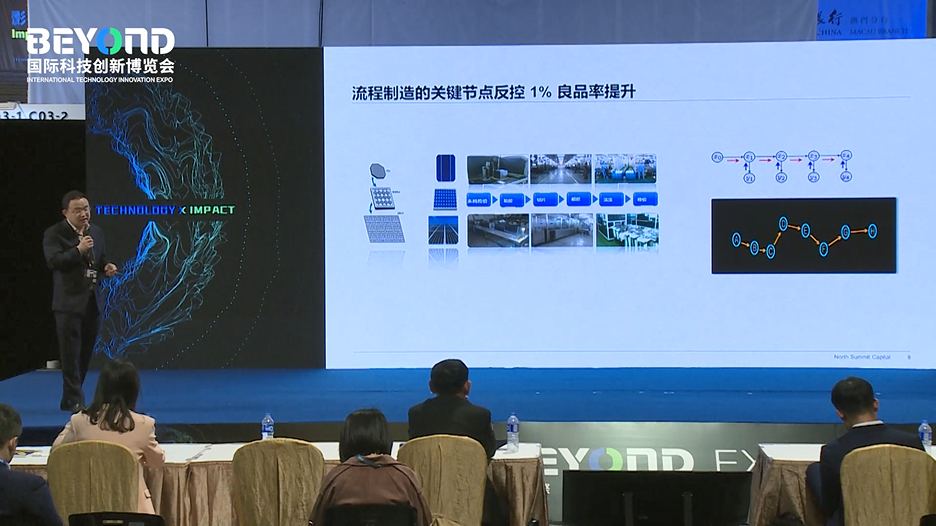 假如把它放在微观傍边,他用制作工厂举例,“左面是个制作业的工厂,出产的是太阳能电池片,然后假如把它的出产流程分化一下之后,然后就会发现说它仍是一个流程,在流水线上每一个岗位上都有波动性,终究工人要做质量把控。把它笼统成HMM。有了网络需求强化的便是因果关系。知道的因果关系之后,在一个出产流程傍边,可以精准的去做协同操控,使得终究的良品率会变好。关于工业出产来说,就可以降本增效提质。”