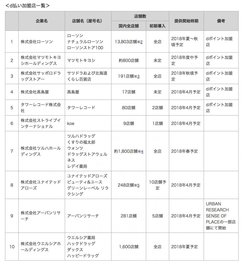 DoCoMo 表明,现在他们方案与罗森、高岛屋等零 10 家零售商合作伙伴推行这款产品,共有 19000 家店肆会布置“d 付出”。别的一些店肆不需要特别购买 POS 机,只需要有一台平板电脑并装置对应的 app 也能向顾客供给这项服务。